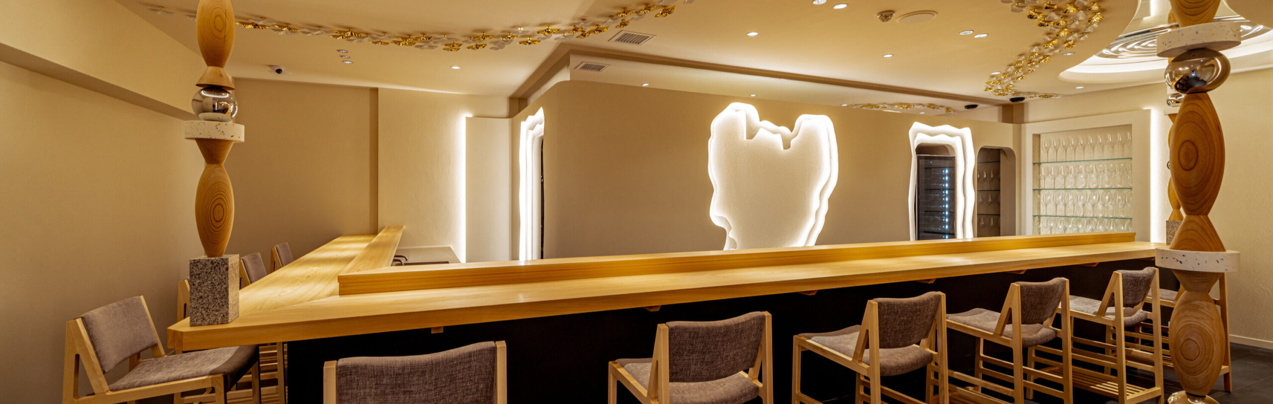 季節の素材を活かした逸品料理の数々を心ゆくまでご堪能ください。銀座の寿司職人、酒井大将が指揮を執るこのダイニングはお客様に特別な体験をお約束します。 店内は10席のカウンター席のみが用意されており、お客様は職人の手捌きを最前列で眺めながら、お食事をお楽しみいただけます。