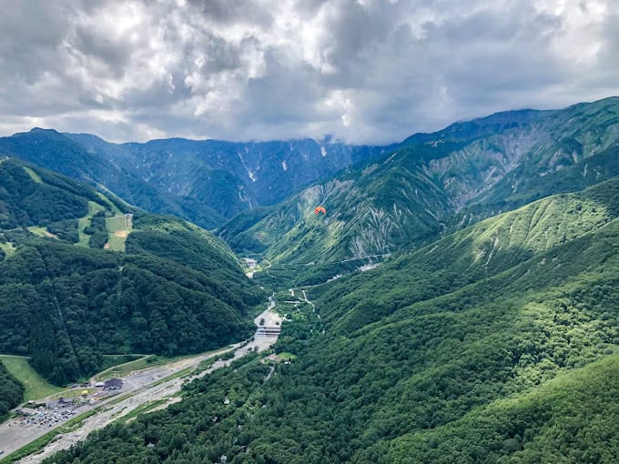 白馬渓谷の上空をパラグライダーで滑空する爽快感は他では味わえない絶景です。 標高450メートルを超える白馬の上空を、熟練したパイロットがご案内します。