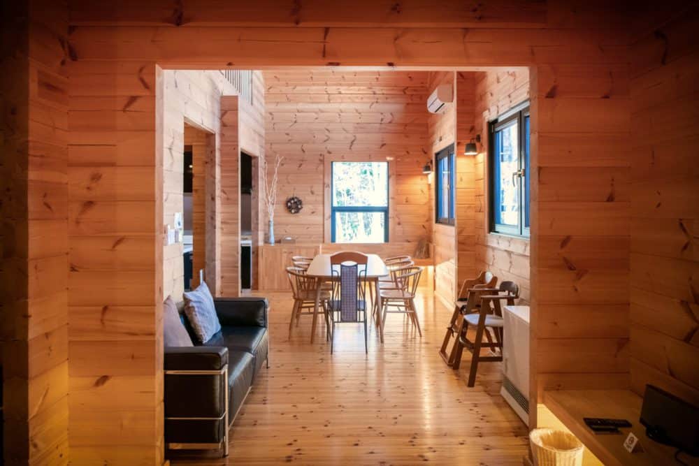 都会を離れ、暖かい雰囲気溢れるログキャビンで過ごしませんか?床から天井まで木の内装で覆われ、ラウンジ、キッチン、ダイニングスペースのどの場所も温かみが溢れています。それはまるで自宅から遠くずっと離れた山にいるような感覚です。